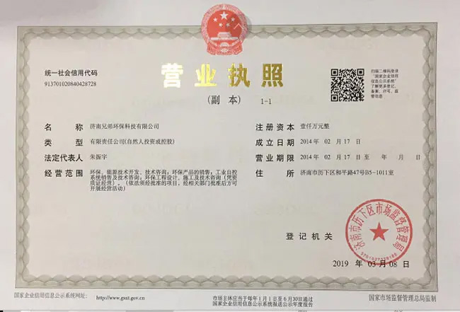 濟南兄弟環??萍加邢薰臼且患掖礓N售進口儀器儀表、環保技術開發、項目設計、設備制造、沼氣發電及配件、工程安裝、調試、運營、售后技術咨詢與服務為主的高新技術企業。